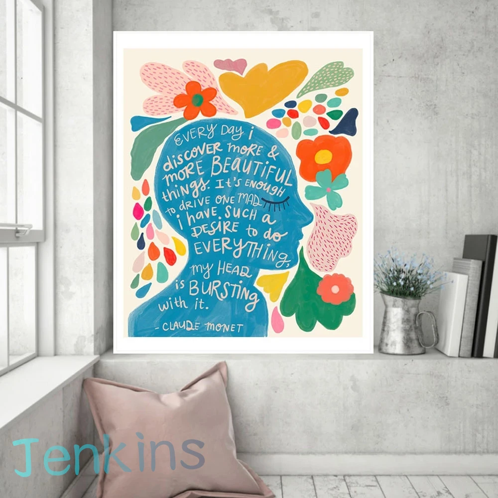 Claude Monet Quote Flower Printed Inspirational Oil Painting Canvas Painting Wall Art Poster Print For Living Room Home Decor Painting Calligraphy Aliexpress